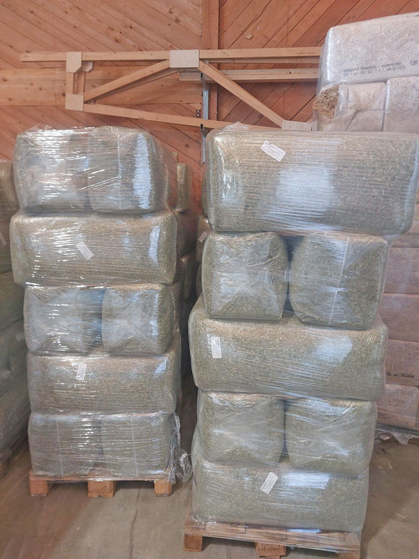 - In Kleinballen (ca. 20 kg) palettiert auf Paletten zu ca. 450 kg